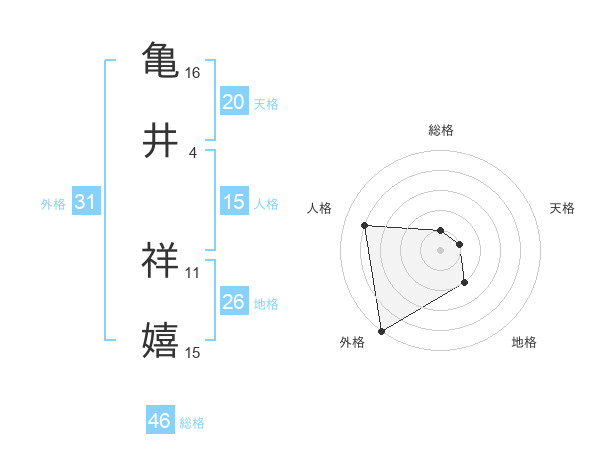 亀井 祥嬉さんの外格は31画の5点!