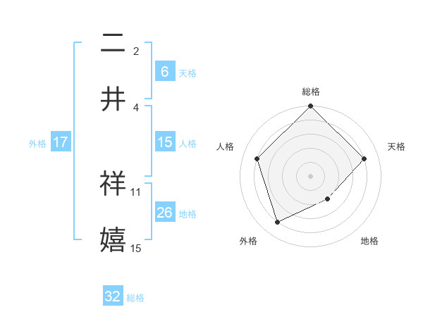 二井 祥嬉さんを姓名の画数から五運を鑑定