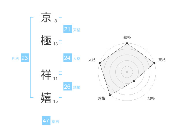 京極 祥嬉さんの総格は47画の5点!
