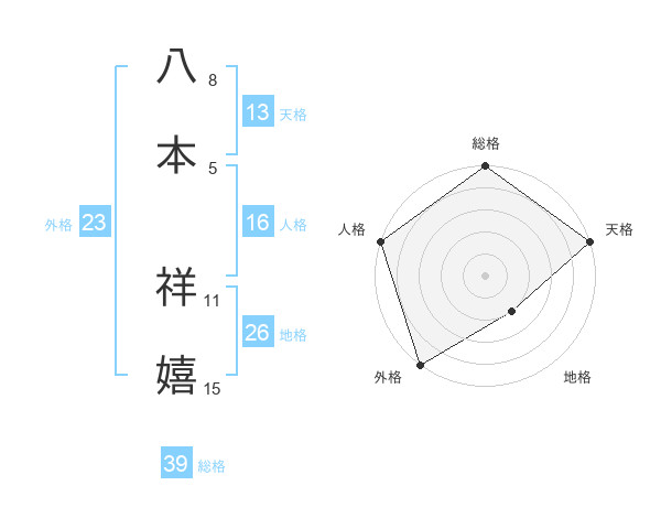 八本 祥嬉さんを姓名の画数から五運を鑑定
