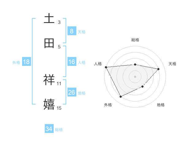 土田 祥嬉さんの天格は8画の4点!