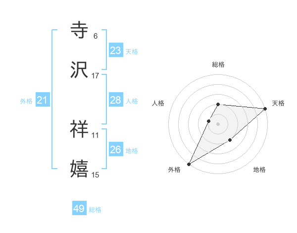 寺沢 祥嬉さんを姓名の画数から五運を鑑定