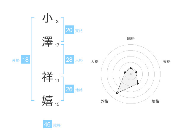 小澤 祥嬉さんの天格は20画の1点!