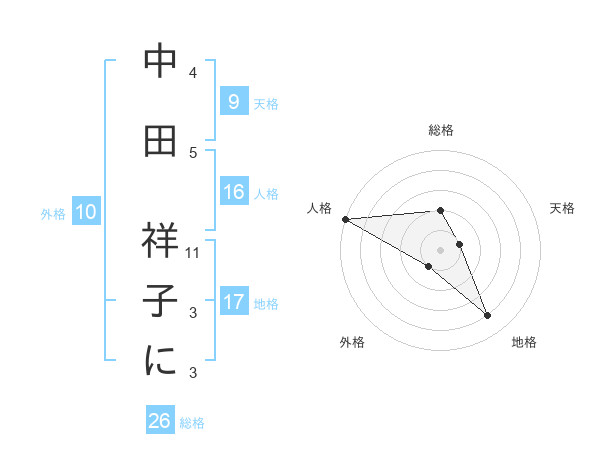 中田 祥子にさんを姓名の画数から五運を鑑定
