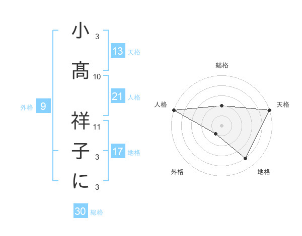 小髙 祥子にさんを姓名の画数から五運を鑑定