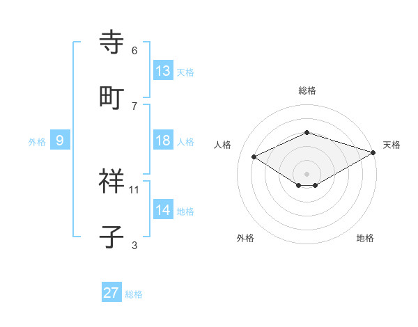 寺町 祥子さんの総格は27画の3点!