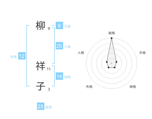 柳 祥子さんの総格は23画の5点!