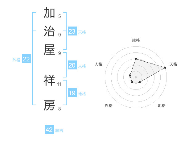 加治屋 祥房さんの天格は23画の5点!