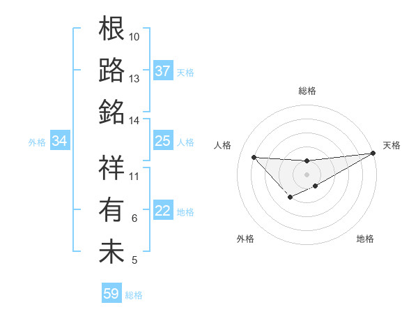 根路銘 祥有未さんの天格は37画の5点!