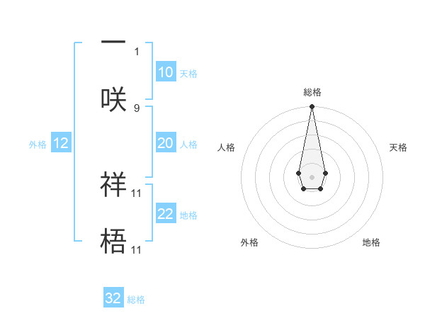 一咲 祥梧さんの総格は32画の5点!