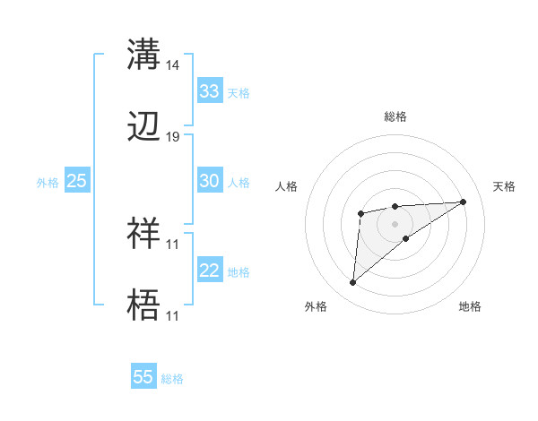 溝辺 祥梧さんの地格は22画の1点!