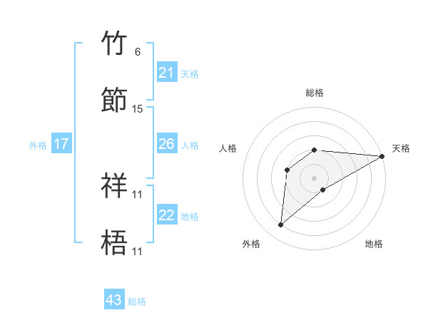 竹節 祥梧さんを姓名の画数から五運を鑑定