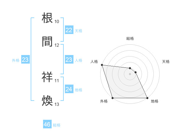 根間 祥煥さんを姓名の画数から五運を鑑定