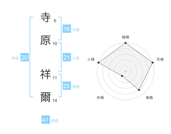 寺原 祥爾さんの総格は41画の5点!