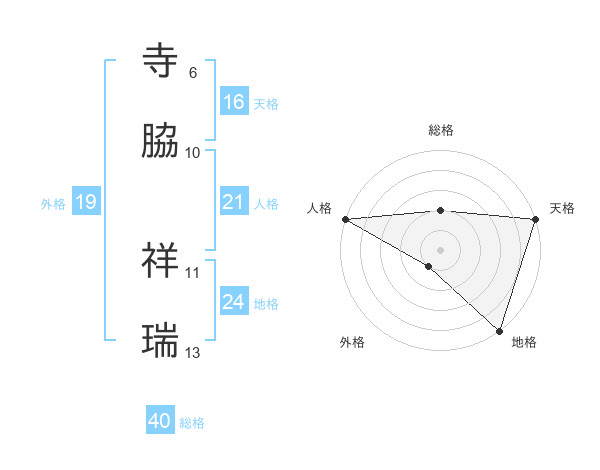 寺脇 祥瑞さんの天格は16画の5点!