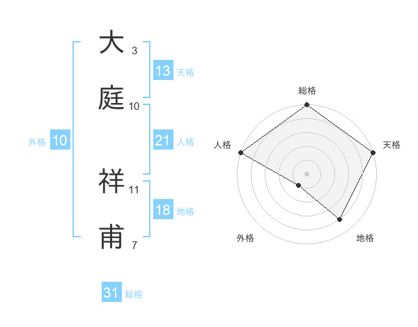 大庭 祥甫さんを姓名の画数から五運を鑑定