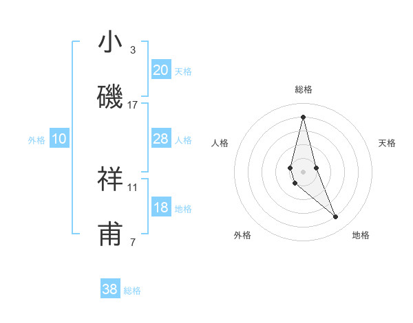 小磯 祥甫さんを姓名の画数から五運を鑑定
