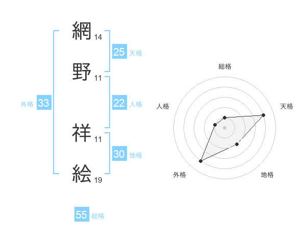 網野 祥絵さんを姓名の画数から五運を鑑定