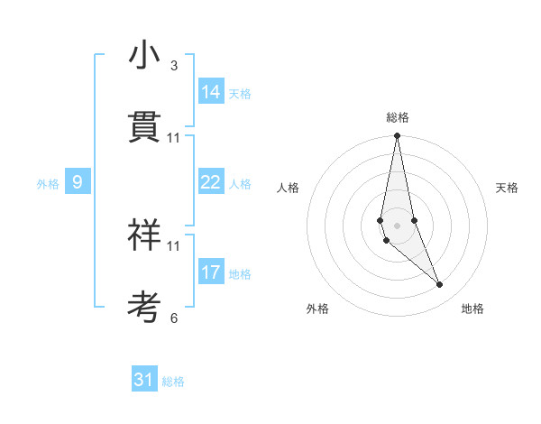 小貫 祥考さんを姓名の画数から五運を鑑定