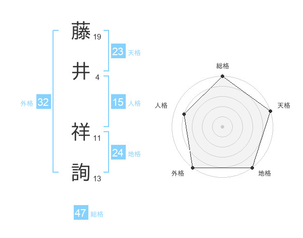 藤井 祥詢さんの総格は47画の5点!