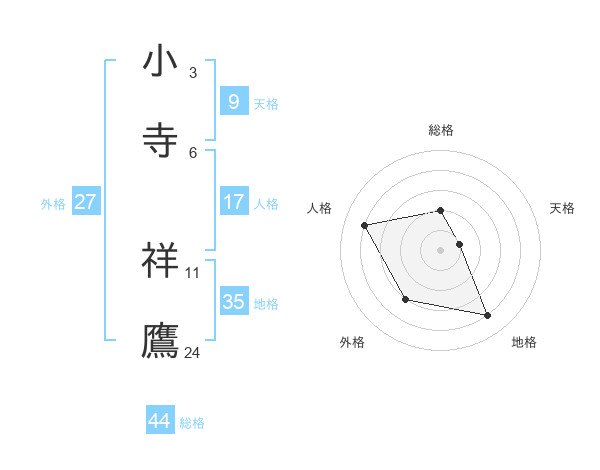 小寺 祥鷹さんを姓名の画数から五運を鑑定
