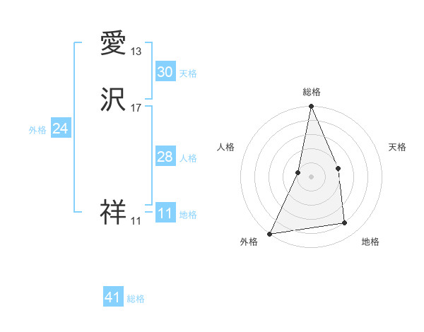 愛沢 祥さんの総格は41画の5点!