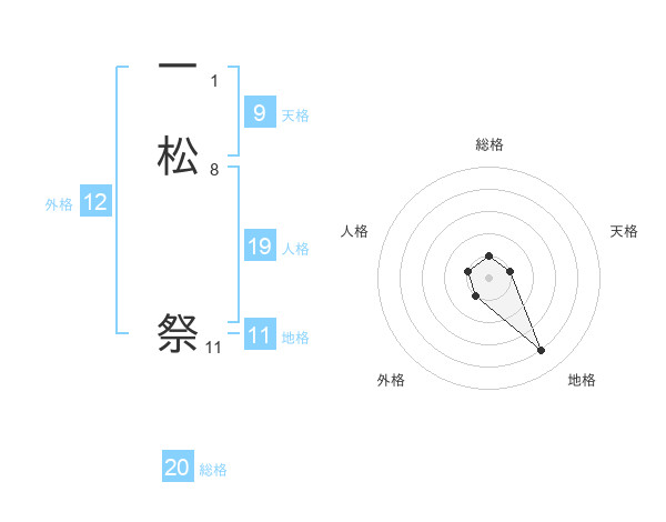 一松 祭さんの総格は20画の1点!