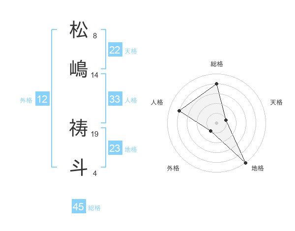 松嶋 祷斗さんを姓名の画数から五運を鑑定