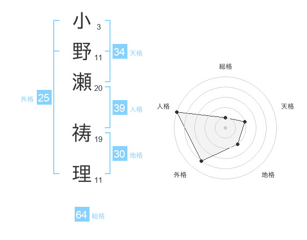小野瀬 祷理さんを姓名の画数から五運を鑑定