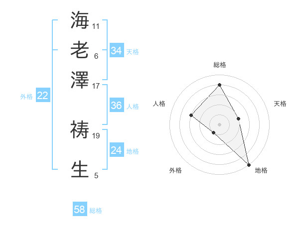 海老澤 祷生さんの総格は58画の4点!