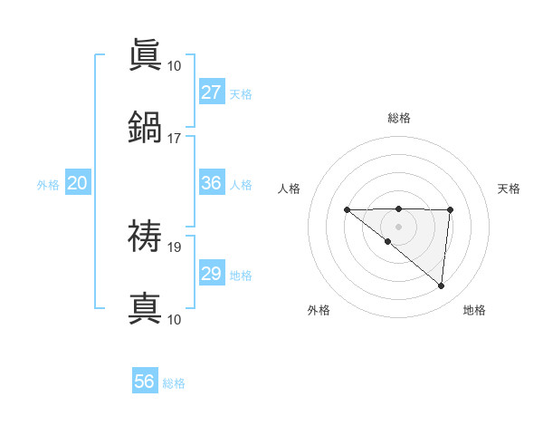 眞鍋 祷真さんを姓名の画数から五運を鑑定