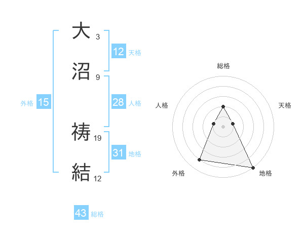 大沼 祷結さんを姓名の画数から五運を鑑定
