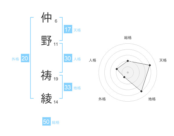 仲野 祷綾さんを姓名の画数から五運を鑑定