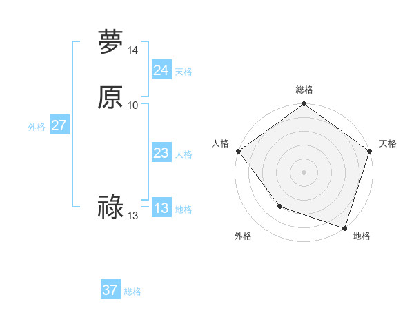 夢原 祿さんの総格は37画の5点!