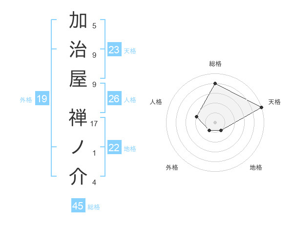 加治屋 禅ノ介さんの天格は23画の5点