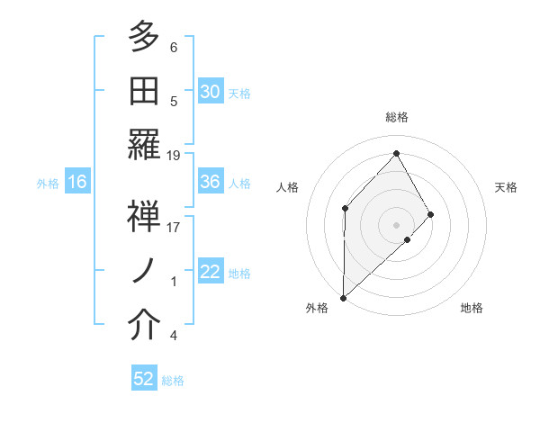 多田羅 禅ノ介さんを姓名の画数から五運を鑑定