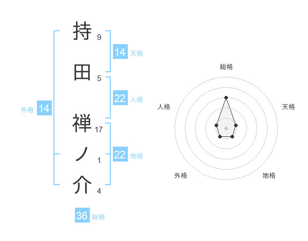持田 禅ノ介さんを姓名の画数から五運を鑑定