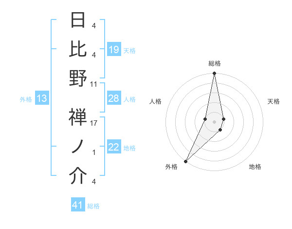 日比野 禅ノ介さんを姓名の画数から五運を鑑定