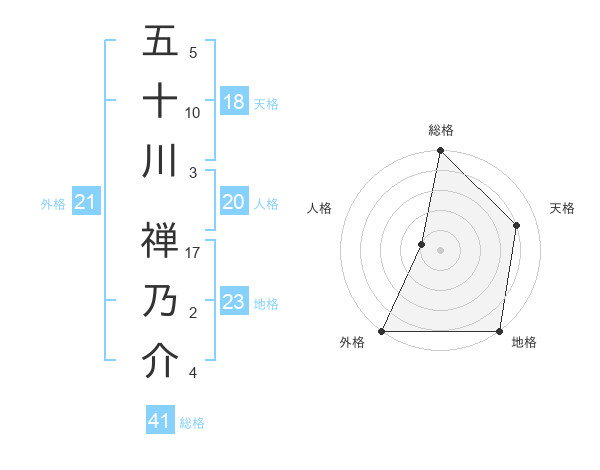 五十川 禅乃介さんを姓名の画数から五運を鑑定