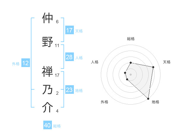 仲野 禅乃介さんを姓名の画数から五運を鑑定