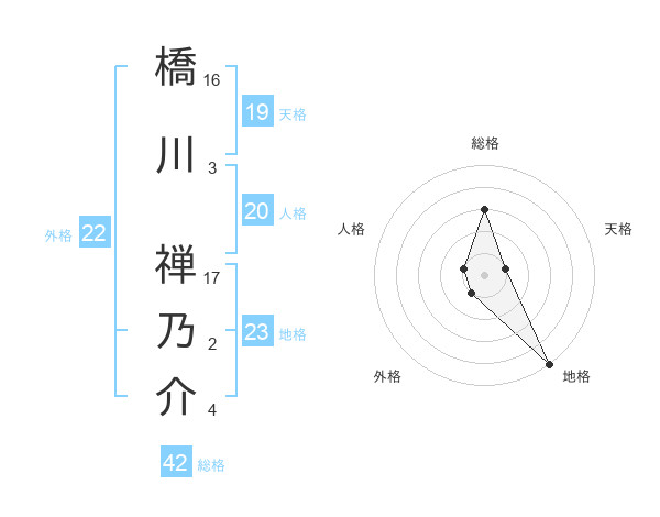 橋川 禅乃介さんを姓名の画数から五運を鑑定