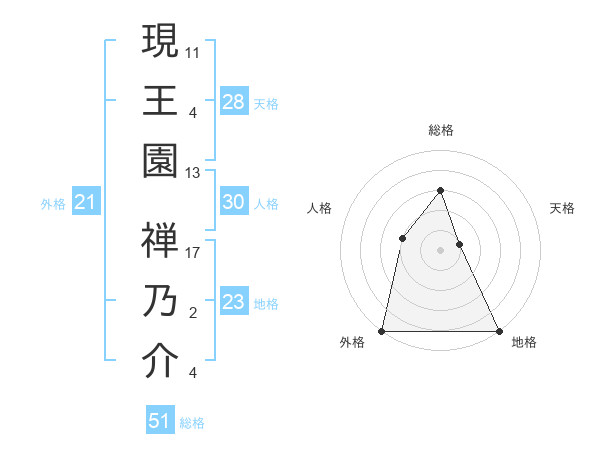 現王園 禅乃介さんを姓名の画数から五運を鑑定