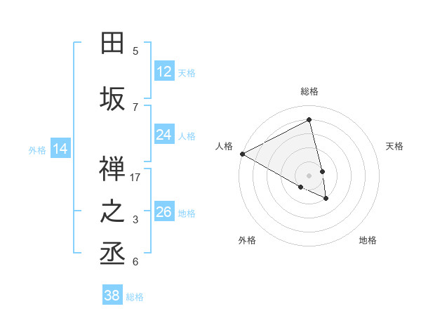 田坂 禅之丞さんを姓名の画数から五運を鑑定