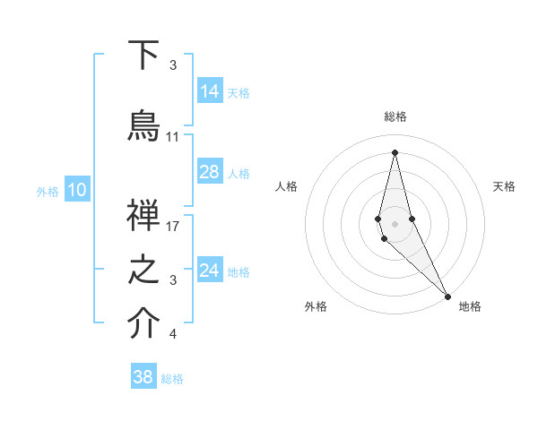 下鳥 禅之介さんを姓名の画数から五運を鑑定