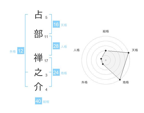 占部 禅之介さんを姓名の画数から五運を鑑定