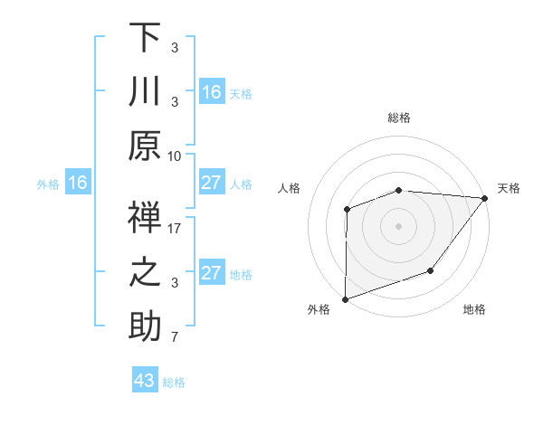下川原 禅之助さんの外格は16画の5点!