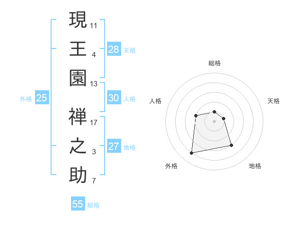 現王園 禅之助さんを姓名の画数から五運を鑑定