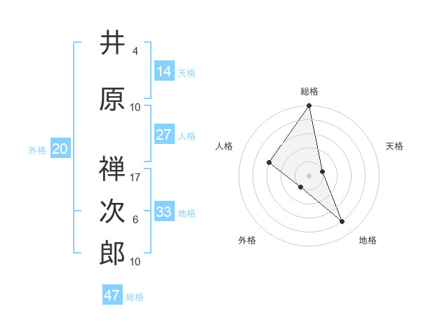井原 禅次郎さんを姓名の画数から五運を鑑定