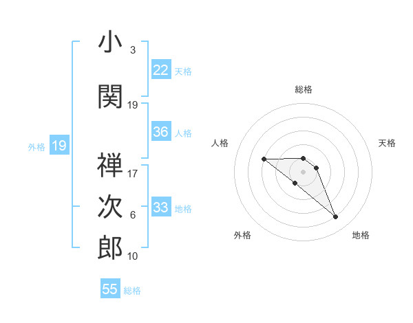 小関 禅次郎さんを姓名の画数から五運を鑑定