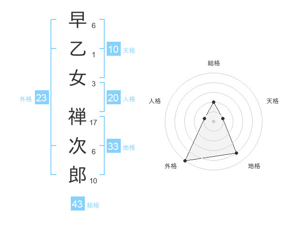 早乙女 禅次郎さんの総格は43画の2点